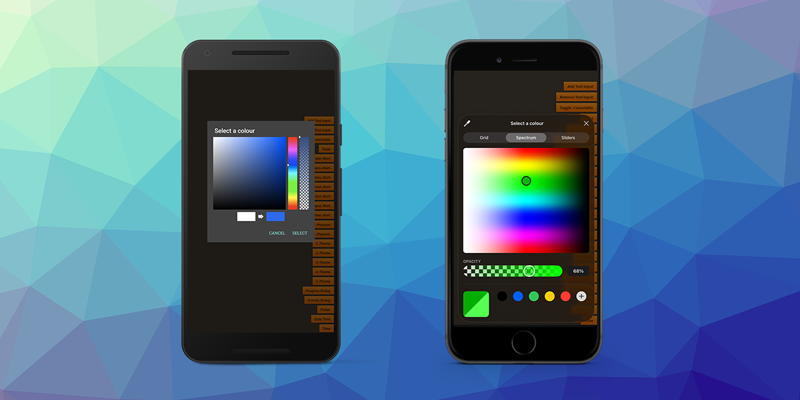 The colour picker dialog presents a UI that allows the user to select a colour on a spectrum.