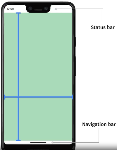 The safe area will give you information about the padding required to avoid rendering into the status and navigation bars.
